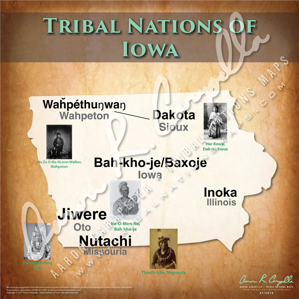 The Tribal Nations of Iowa Map is now available as an 11” x 14” puzzle. This tribal nations map puzzle can be purchased in 30-piece and 252-piece versions. This map of Native American and Indigenous Peoples tribal nations represents the original pre-contact homelands of the hundreds of Tribal Nations that existed across what is now Iowa. Most of the names shown here are the indigenous autonyms that Native American tribes use for themselves. In some cases where the original tribal name was never recorded, other common names are used. Many Native American tribes did not survive the invasion by Europeans, yet this map serves as a visual reminder of their memory. This is the first time for many of these tribes of Indigenous Peoples to ever have a place on a map. This is dedicated to the Native American nations across this land. May this Native American tribal map instill pride in Native Peoples and teach the non-Native public about our history.