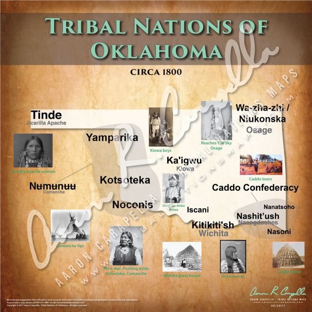 The Tribal Nations of Oklahoma Map represents the original pre-contact homelands of the hundreds of Tribal Nations that existed across what is now Oklahoma. Most of the Native American (American Indian) tribal names shown here are the indigenous autonyms that tribes use for themselves. In some cases where the original name was never recorded, other common names are used. Many Native American tribes did not survive the invasion by Europeans, yet this map serves as a visual reminder of their memory. This is the first time for many of these Native American tribes to ever have a place on a map. This is dedicated to all of the Tribal Nations and Indigenous Peoples across this land. May it instill pride in Native American and Indigenous Peoples and teach the non-Native public about our Native American and Indigenous Peoples history.