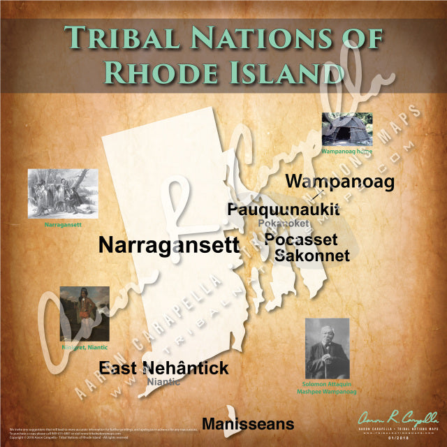 The Tribal Nations of Rhode Island Map represents the original pre-contact homelands of the hundreds of Tribal Nations that existed across what is now Island. Most of the Native American (American Indian) tribal names shown here are the indigenous autonyms that tribes use for themselves. In some cases where the original name was never recorded, other common names are used. Many Native American tribes did not survive the invasion by Europeans, yet this map serves as a visual reminder of their memory. This is the first time for many of these Native American tribes to ever have a place on a map. This is dedicated to all of the Tribal Nations and Indigenous Peoples across this land. May it instill pride in Native American and Indigenous Peoples and teach the non-Native public about our Native American and Indigenous Peoples history.
