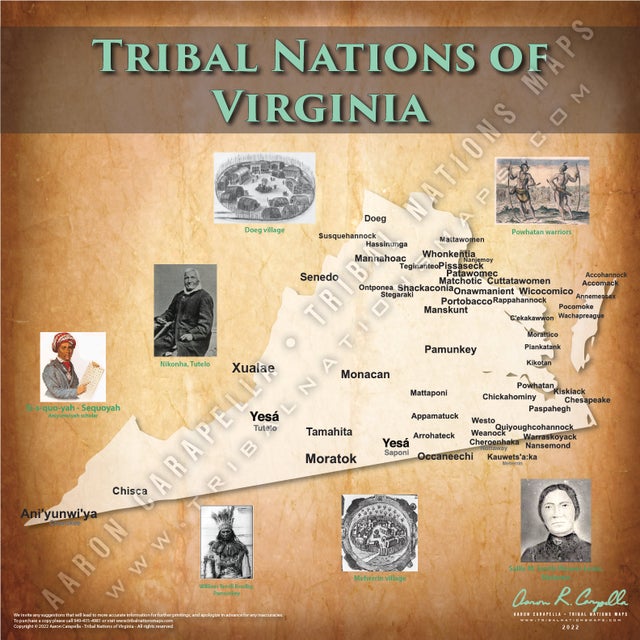 The Tribal Nations of West Virginia Map represents the original pre-contact homelands of the hundreds of Tribal Nations that existed across what is now Virginia. Most of the Native American (American Indian) tribal names shown here are the indigenous autonyms that tribes use for themselves. In some cases where the original name was never recorded, other common names are used. Many Native American tribes did not survive the invasion by Europeans, yet this map serves as a visual reminder of their memory. This is the first time for many of these Native American tribes to ever have a place on a map. This is dedicated to all of the Tribal Nations and Indigenous Peoples across this land. May it instill pride in Native American and Indigenous Peoples and teach the non-Native public about our Native American and Indigenous Peoples history.