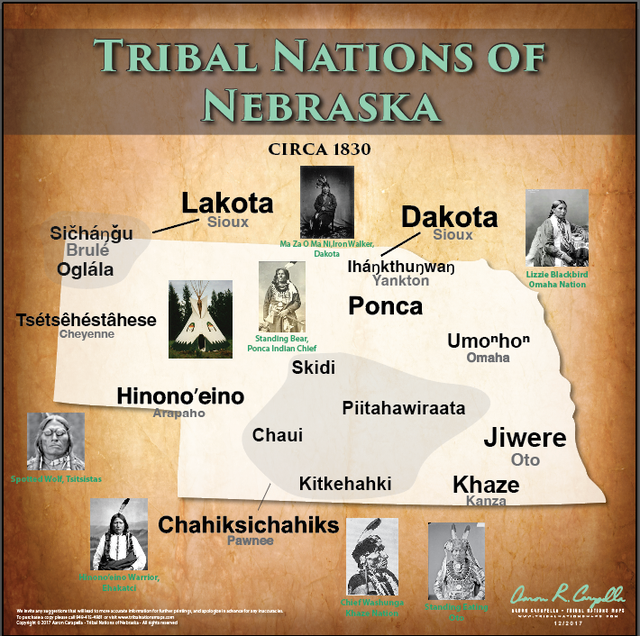 The Tribal Nations of Nebraska Map represents the original pre-contact homelands of the hundreds of Tribal Nations that existed across what is now Nebraska. Most of the Native American (American Indian) tribal names shown here are the indigenous autonyms that tribes use for themselves. In some cases where the original name was never recorded, other common names are used. Many Native American tribes did not survive the invasion by Europeans, yet this map serves as a visual reminder of their memory. This is the first time for many of these Native American tribes to ever have a place on a map. This is dedicated to all of the Tribal Nations and Indigenous Peoples across this land. May it instill pride in Native American and Indigenous Peoples and teach the non-Native public about our Native American and Indigenous Peoples history.