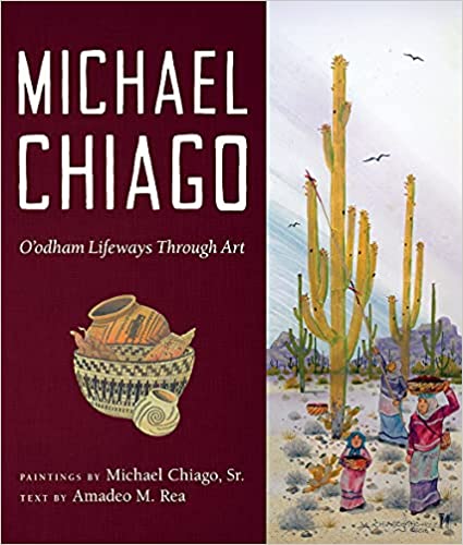 A wide array of Chiago’s paintings are represented in this book, illustrating past and present Akimel O’odham and Tohono O’odham culture. The paintings show the lives and traditions of O’odham people from both the artist’s parents’ and grandparents’ generations and today. The paintings demonstrate the colonial Spanish, Mexican, and Anglo-American influences on O’odham culture throughout the decades, and the text explains how wells and windmills, schools, border walls, and nonnative crops have brought about significant change in O’odham life. The paintings and text in this book beautifully depict a variety of O’odham lifeways, including the striking Sonoran Desert environment of O’odham country, gathering local foods and cooking meals, shrines, ceremonies, dances, and more.